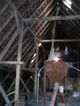 Bei diesem Objekt wurde der Dachraum über einem Stall entkernt. Der Dachraum, der bisher als Futtermittellager diente, soll zu einer Wohnung umgebaut werden.